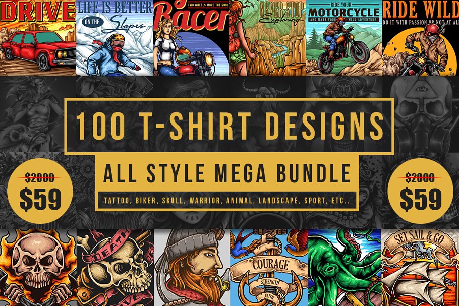 Download 100 T-Shirt Designs 2037879 – CreativeMarket – Free Graphics Download