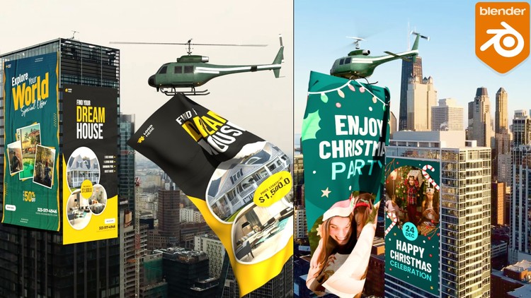 Welcome to Learn Blender VFX & CGI Ads: Banner Unroll & Pro-Level CGI, a course tailored for beginners and intermediate Blender users eager to enhance their CGI and VFX skills for creating impactful advertisements. This practical training covers everything from Blender basics to advanced techniques such as cloth simulations for a tourism ad, animation setups for home ads, and festive elements in a Christmas campaign. By the end, gain the abilities to craft eye-catching, professional-quality visual effects and CGI.