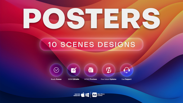 10 Posters Scenes 46912469. This bundle of 10 posters animations for After Effects is a must-have for anyone looking to create stunning visuals. With auto-resize support, these animations will adjust to fit any screen size, making them perfect for any project.