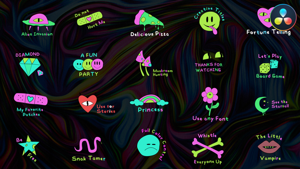 Acid Titles for DaVinci Resolve comes packed with a colorful titles collection that offers full-color controls, making customization a breeze. A handy font link is provided, ensuring you have everything you need to maintain a consistent aesthetic. Additionally, an informative video tutorial is included, guiding you through the process, eliminating the need for any plugins.