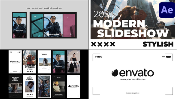 Aesthetic Modern Slideshow for After Effects 45896308. Stylish, modern and neat slideshow template with a clean minimalistic style. The project is easy to use, carefully grouped, named and organized. Type text in any font, add images, adjust colors and enjoy the result. Create a portfolio of your work, a fashion magazine cover with this stylish project slideshow. The project is presented in horizontal and vertical versions!