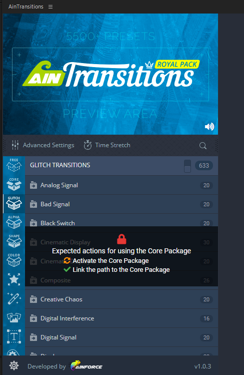 • Glitch Transitions Subpack (630+ transitions) with sound effects