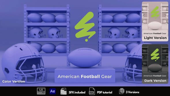 Free Download American Football Gear. Are you ready to elevate your American Football Gear content to the next level? Our latest offering provides you with an array of After Effects templates, delivering stunning 4K visuals that require no additional plugins. Crafted for ease, these templates cater to both beginners and seasoned video editors, with an intuitive interface and a helpful PDF tutorial to guide you through the creative process. The carefully designed special effects (SFX) are included to ensure that each piece of content you produce is not just visually engaging but audibly impactful as well. Compatible with After Effects 2022 and later versions, these resources are poised to boost the dynamism of your sports-related projects. While music tracks are not bundled, we offer suggestions where high-quality audio can be obtained to complement your visuals perfectly. Dive into the world of professional-grade sports graphics with our comprehensive collection, curated to meet your multimedia needs.