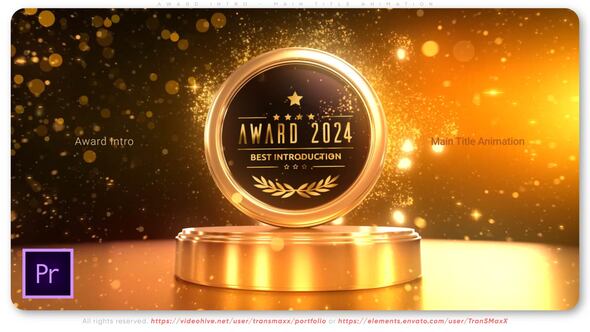 Elevate your video project with the Award Intro – Main Title Animation template for Adobe Premiere Pro, a luxurious, gold-themed opener perfect for celebrating victories and presenting with style. With its easy-to-edit features and clear instructions, this template doesn’t require After Effects—just Premiere Pro CC 2021 or newer. Impress viewers with a professional-looking title animation, featuring smooth transitions and a regal atmosphere.