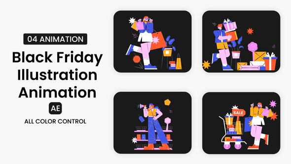 This template enhances your After Effects project by providing clean, modern visuals that are easy to customize and perfect for a wide range of applications from web animations to social media posts. Whether you are crafting a presentation or enhancing your online marketing materials, ‘Black Friday Illustration Scene’ elevates your content with its design precision and attention to detail.