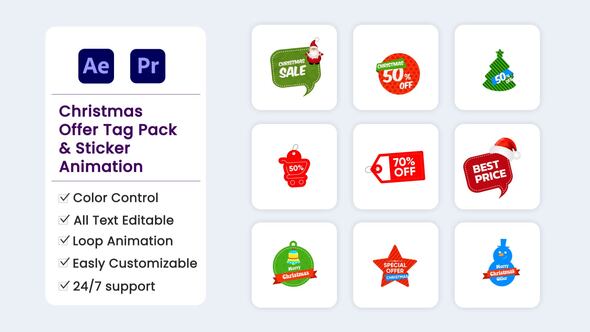 The Christmas Offer Tag Pack for After Effects and Premiere Pro CC 2021 features 10 ready-to-use stickers and titles, is fully resizable, and requires no plugins, enhancing your festive projects effortlessly.
