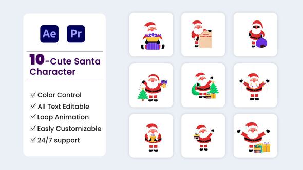The Christmas Santa Character Pack for After Effects and Premiere Pro CC 2021 includes 10 ready-to-use animations, perfect for enhancing your festive videos and social media posts. No plugins needed, works in any language, and fully resizable.
