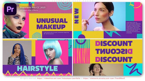Create stunning promotional videos easily with the Cosmetics Shop Promo template for Adobe Premiere Pro CC 2021 and above—no After Effects needed!