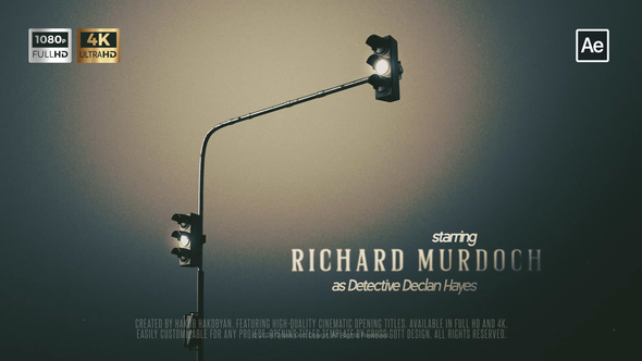 The “Opening Titles” After Effects template is perfect for your next crime drama or mystery project, emulating a dark, cinematic style seen in modern TV series. This high-quality template offers a one-minute duration, 4K resolution that scales to Full HD, and features pre-rendered scenes for versatile utilization in various projects. Tailor the overall mood easily with global color control, enhancing your project’s unique aesthetic without the need for additional plugins.