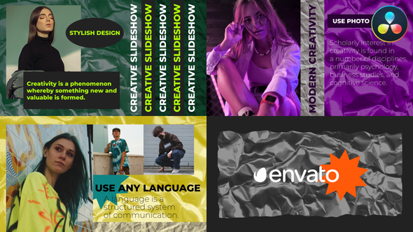 Design Slideshow for DaVinci Resolve 43384313 Design Slideshow is a modern, stylish design template in Full HD resolution. Fully customizable colors. Just use this colorful template to create black friday sale, realize fashion week, drop stylish presentation and more. Add your logo and media, type text in any font, adjust colors and enjoy the result.