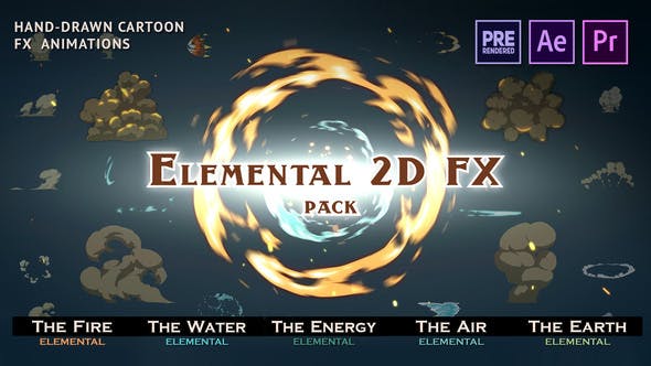 Elemental 2D FX is a package hand-drawn FX animations. You can use all non-linear editing tools that support mattes and compositing software like Adobe Premiere Pro, Adobe After Effects, Sony Vegas, Final Cut, Edius etc.