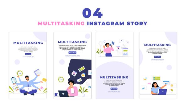 Eye Catching Multitasking Employee Character Instagram Story Demo & Download