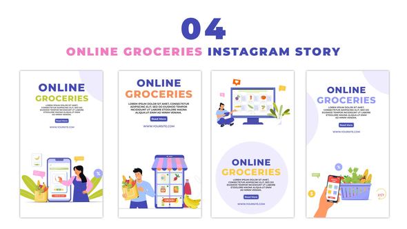 Eye Catching Online Groceries Order Character Instagram Story Demo & Download
