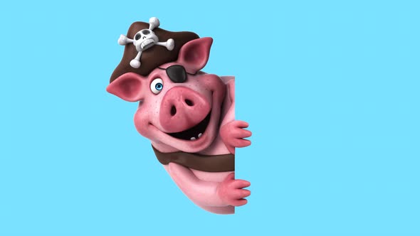VideoHive Fun 3D cartoon pirate pig with a sign (with alpha channel) 43423217