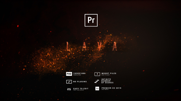 • Includes 7 MOGRT files, offering a variety of dynamic fire and lava themed title sequences that enhance any project.