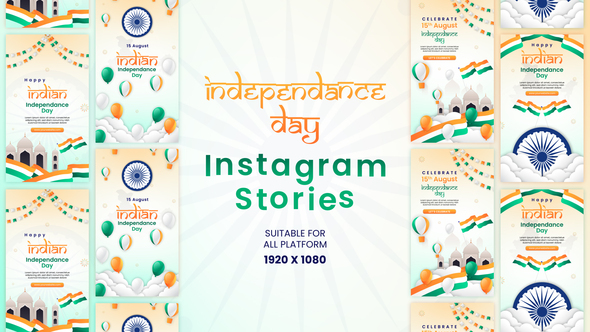 Celebrate Indian Independence Day with vibrant Instagram stories using the ‘Indian Independence Day Creative Instagram Story Template’ designed for After Effects. This template boasts a suite of four captivating stories tailored for the auspicious occasion, ensuring your message stands out. With a high-resolution format of 1080 x 1920, the templates promise visual clarity and impact.