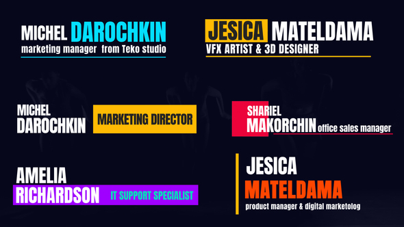 Lowerthirds offers a dynamic and customizable experience for video projects. It features in/out animation, Full HD resolution (1920×1080), and the ability to fully control the color scheme, catering to diverse creative needs. Seven unique lowerthirds are available, requiring no additional plugins and designed for quick rendering and easy customization. The package comes complete with a detailed video tutorial and a text guide, ensuring a smooth user experience. Note: music and fonts for this project are available separately.