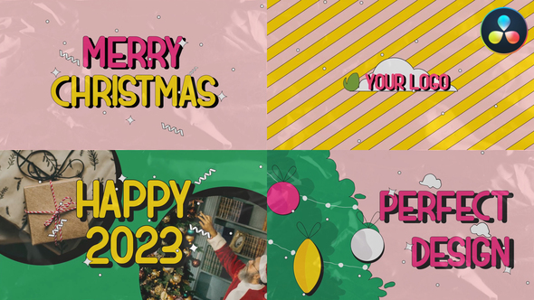 Merry Christmas Colorful Greeting Scenes for DaVinci Resolve | Size: 554.85 MB