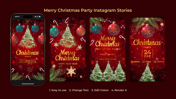 Free Download Merry Christmas Party Instagram Stories | Christmas Opener. Get your Instagram buzzing this holiday season with the Merry Christmas Party Instagram Stories template. Perfect for creating festive and engaging stories, this tool is compatible with After Effects CC 2021 and above, ensuring high-quality visuals without the need for any plugins. Offering four customizable story options and an easy editing process, you can personalize each story to match your holiday spirit. Plus, no worries about finding the right fonts— a free download link is included. Just add your favorite Christmas tunes, and your festive stories are ready to go!