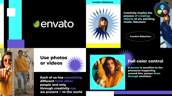 Modern Slideshow for DaVinci Resolve 43144540 Modern Slideshow is a creative and stylish template with colorful and minimalistic animation. In this template, you have 10 unique scenes. Very easy to use! Type the text with any font, add your logo, media, adjust color, and other options. A perfect way to improve your work like presentaion, portfolio, and others in such an amazing way. Stun your audience with this animated template.