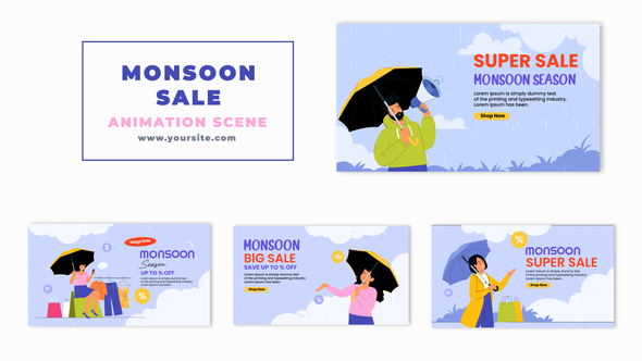 Monsoon Sale Offer Flat Character Animation Scene Demo & Download