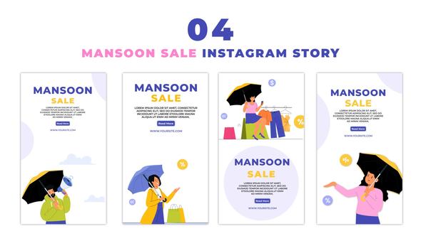 VideoHive Monsoon Sale Offer Flat Character Instagram Story 47440577