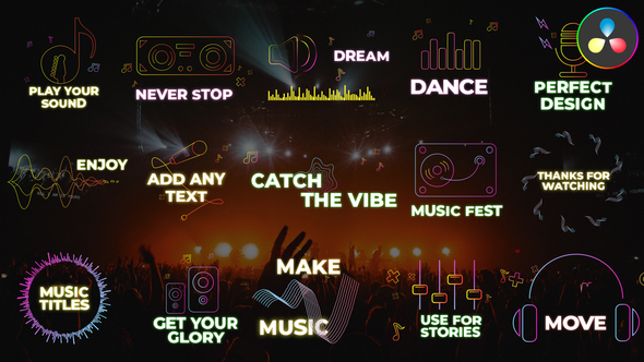 Enhancing your video projects with dynamic text animations adds a level of professionalism and flair that can captivate your audience. ‘Music Titles | DaVinci Resolve’ does just that, by offering a variety of animated titles that will make your music videos, concert advertisings, and event promos stand out.