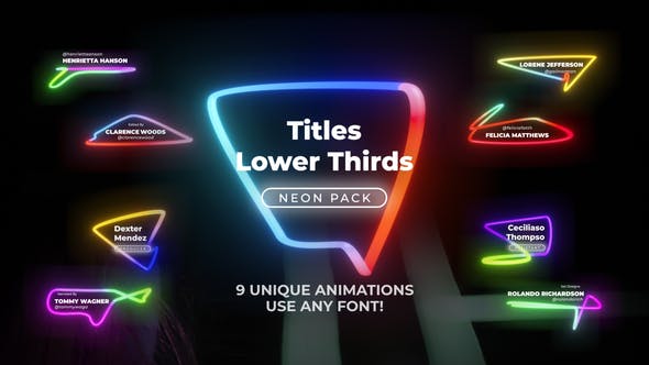 Lower Thirds Titles Neon 6 is a fast-paced and fashionably animated After Effects template with 3D neon glowing strokes that stylishly wrap around and reveal your media.