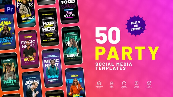 Elevate your social media presence with Party Instagram Stories. Designed for Premiere Pro 2020 or above, this pack offers 50 distinctive Instagram Stories/Reels to captivate your audience. The full HD vertical resolution ensures your content stands out, while the 25 fps frame rate keeps it smooth. Benefit from an easy-to-use setup and grow your engagement with these professional designs.