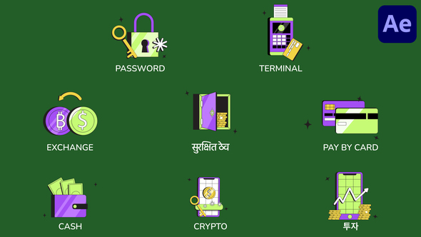 The ‘Payment Icons and Titles for After Effects’ template offers customizable, animated icons perfect for enhancing financial and digital transaction-related projects.