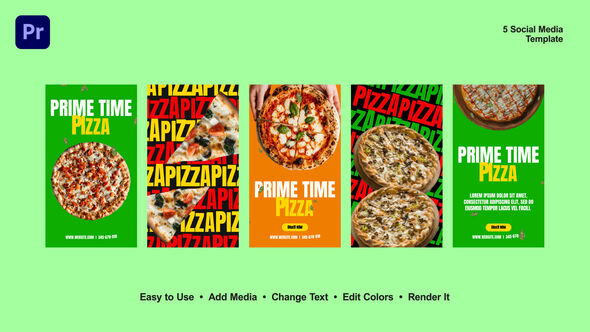 This template offers a turnkey solution for anyone looking to promote their pizza offerings in a visually appealing way, leveraging the advanced capabilities of Adobe Premiere Pro to ensure your content stands out on social media.