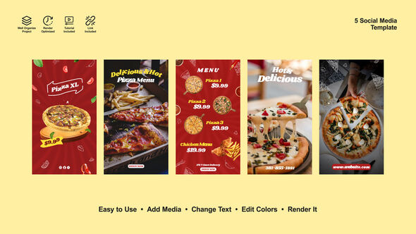 The package comes with five unique Instagram Story or Reel formats, all featuring full HD vertical resolution at a smooth 25 fps, ensuring your content looks crisp on all devices. Whether you’re showcasing mouth-watering photos or immersive videos of your pizza, this template makes customization straightforward. It includes a handy tutorial video and a font link is also provided, making the personalization process as simple as topping a pizza with your favorite ingredients.