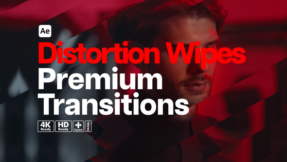 Premium Transitions Distortion Wipes offer sleek video effects for After Effects 2019+, including 4K and HD resolutions, 16 dynamic transitions, SFX, and no plugins required. Easy tutorial and license options available.