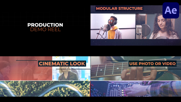 Elevating your video projects to a new level of sophistication is effortless with the Production Reel for After Effects. This template is a perfect match for those eager to infuse their creations with a rhythm and dynamism typically found in professional sports commercials or urban showreels. Its design is a canvas of multi-screen layouts, punctuated by animated text with a vibrant flair, carefully blended with glitch and cinematic effects for that cutting-edge visual appeal.