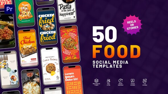 Enhancing your restaurant’s Instagram presence is effortless with the Food Restaurant Stories package. Designed for use with Premiere Pro 2023 and later versions, these 50 distinct Instagram Stories/Reels templates offer a full HD vertical resolution, perfect for catching the eye of your audience. With a frame rate of 25 fps, your culinary creations will come to life, tempting viewers with their visual appeal.