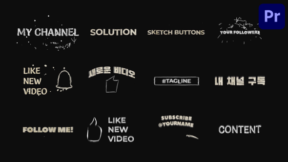 • With ‘Sketch Youtube Buttons and Titles for Premiere Pro’, gain access to a spectrum of colorful animations that personalizes your production. This package is filled with playful yet professional visuals that can seamlessly be incorporated into your content.