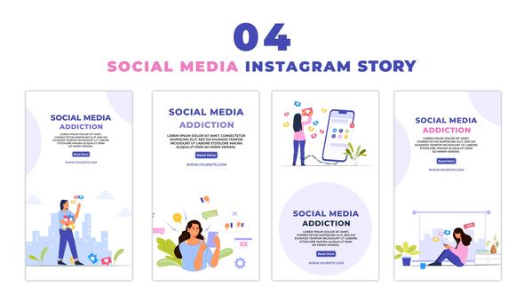 Social Media Addicted Girls Flat Character Instagram Story Demo & Download