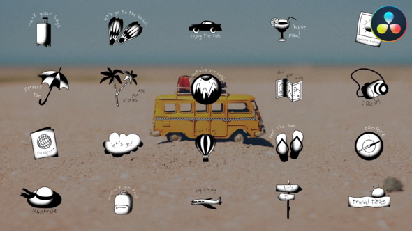 Elevate your travel videos with the dynamic ‘Travel Titles for DaVinci Resolve.’ This stylish template offers animated text within travel-themed icons, full color control, and simple font customization. Perfect for creating captivating intros or social media content, it includes helpful video tutorials and music links. Compatible with DaVinci Resolve 17, these features ensure your video projects stand out.