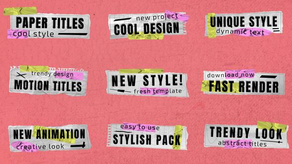 With these features, Unusual Paper Titles provide not only a professional flair to video content but also ensure a user-friendly experience. They are designed to help creators elevate the visual appeal of their content effortlessly. Whether you’re looking to add a creative touch to corporate presentations, YouTube videos, or any other digital content, these title templates serve as a valuable tool in achieving a polished, engaging product. The intuitive customization options make it possible for anyone, regardless of their technical skill level, to produce eye-catching titles that resonate with their audience and reinforce their message. The added benefit of not requiring extra software or plugins means that these titles are not only easy to implement but also kind to your production budget.