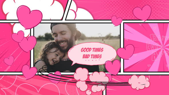 Valentine Comic Opener 43433146. Valentine Comic Opener is a video template for After Effects with a comic theme decorated with animated valentine elements. Made specifically to celebrate the moment of Valentine’s Day, for greetings, product promos, openers, intros or outro